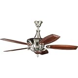P2528-81 Features: -Ceiling fan.-Classic cherry blades.-CUL listed.-Full function remote.-Ceiling mounting on decorative column.-Five hand carved blades 14 degree pitch.-Triple capacitor speed, remote reverse control motor.-Blade: 58''.-Handheld light and ceiling fan remote control.-Provides fan speed and dimming light control.-For single pole applications.-Receiver fits in canopy.-Wall mounted ceiling fan control.-Four speed fan wall control.-Not for use with multiple fans.-3/4'' inside diameter.-1'' external diameter. Includes: -A 0.75'' x 6'' downrod included.-Includes switch plate cover. Color/Finish: -Antique nickel finish.-White finish. Specifications: -Motor: 188mm W x 20mm H.-Accommodates: 6 x 7W E12 bulbs. Dimensions: -Overall dimensions: 25.88'' H x 58'' W.-12'' downrod for 9'-10' rooms. Collection: -Thomasville Crescent Heights Collection. Warranty: -Limited lifetime warranty.